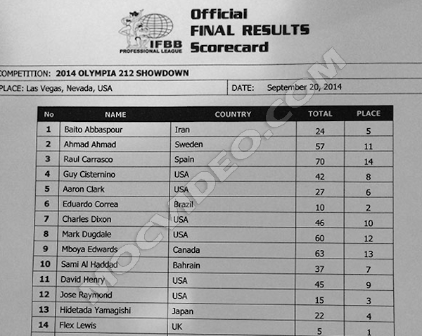 COMPETITOR HISTORY OF THE IFBB MR. OLYMPIA